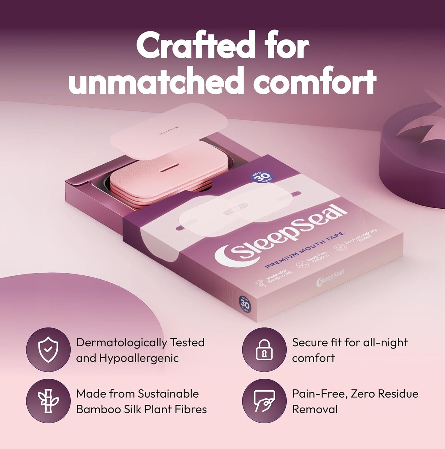 Great days start with great sleep. SleepSeal naturally supports nasal breathing to reduce snoring, improve sleep quality, and help you wake up truly rested, recharged, and ready to win the day.